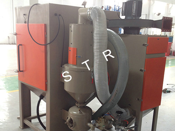 Features: Sandblasting machine is mainly used in electroplating, paint, coating area to-be-covered before piating; Old way of refurbished cleaning; Metal products and plastic, crystal, glass surface trace eliminate scattered, dumb, surface process to enhance the grade of the product's surface; Machining parts tiny burrs purify; Increase the metal surface hardness, eliminate stress such as spring, mechanical cutters, etc.; Metal and non-metai products surface etching pattern, writing and prevent slippery processing, such as marble, seals, and handle prevent slippery, etc. The machine is applied the range: applicable to small and medium-sized general of workpiece and high hardness workpieces quickly sandblasting. Such as engine fittings, valves, heat treatment workpiece, etc. This machine has novel, scientific design and reasonable structure, convenient operation, processing superior performance; Gush arenaceous speed, the impact point at deep.