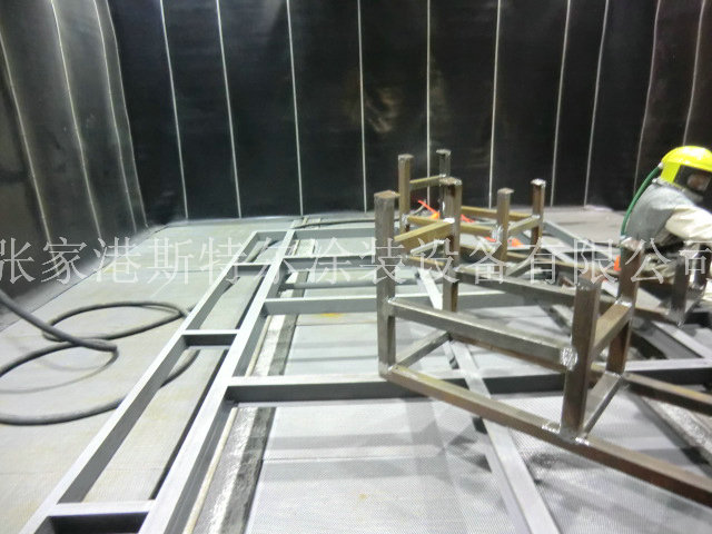 噴砂房由于蜂窩式吸砂地板采用氣力輸送,無須再用傳統機械輸送噴砂房中的皮帶、絞龍、刮板滑車、鏈條和斗式提升機等傳統旋轉運動機械,避免了在砂料運輸、提升過程中砂料、粉塵對運輸機械、軸承、電機產生的磨損現象,避免了繁重的維修工作。并且其安裝無須深地坑,縮短了施工周期,節約了基建成本;而傳統噴砂房一般需要按照噴砂房體尺寸開挖一個2.5-3.5米的深地坑。由于風力式噴砂房的砂料回收及粉塵回收的進氣口全部安排在蜂窩吸砂地板的下面,氣流及粉塵始終是自上而下,粉塵一直被壓制在噴砂房的下部,因此噴砂房內0.5米以上的空間粉塵濃度很低,能見度非常高,工作環境較好;而傳統的噴砂房由于結構上的原因,除塵口必須安排在噴丸室的頂部或側面,其粉塵的流向是自下而上或水平流動,因此在噴砂機作業時噴丸室內的粉塵含量始終很高,能見度低,工作環境惡劣。風力式噴砂房的整個循環過程實現全風動、全自動,設備在運行過程中完全滿足使用要求。