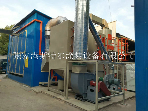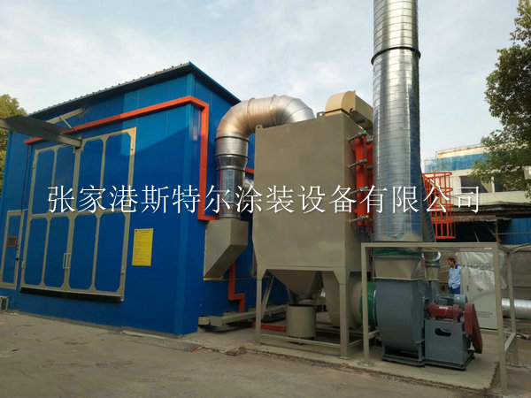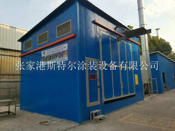 ●噴砂房內部尺寸(長度 7米×寬度5米×高度4米),房體骨架由型材制作而成,內部敷設專用噴砂房橡膠板作為防護,中間層為鋼板,最外層墻體敷設巖棉板進行消音及美觀; 防雨百葉窗: